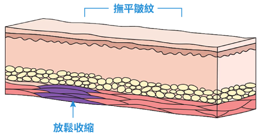 2. 收縮頻繁形成皺紋