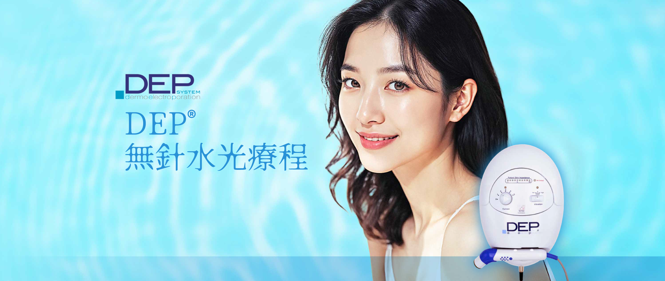 DEP® (DermoElectroPoration®)「無創電子皮膚穿透系統」為意大利科研團隊研發的專利技術,透過皮膚水基通道,從而增加皮膚的穿透性,電脈衝能精確地將活性成分送到真皮層及皮下組織(深達3至5 mm)。DEP®無針導入獲FDA認證「作為傳統注射的替代品」。